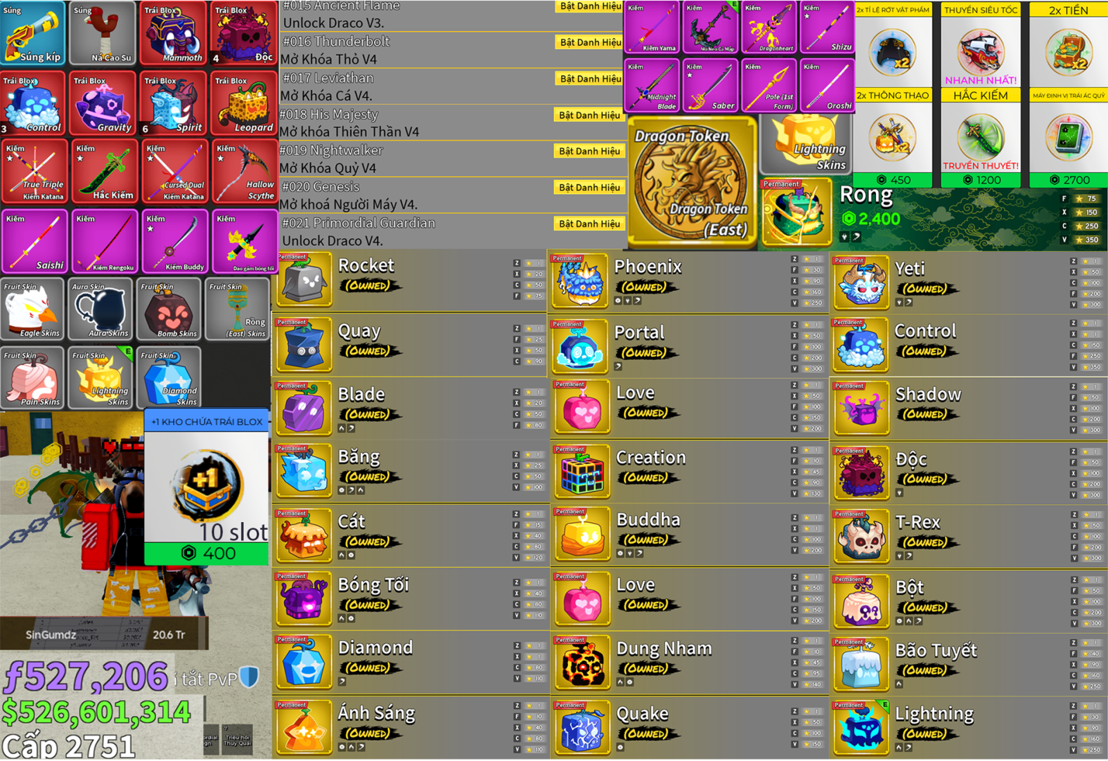 Ưu đãi == tặng trái ác quỷ khi các bạn xài hết trái trong acc ( chỉ cần nhắn tin qua hỗ trợ sẽ thêm trái vào cho các bạn )